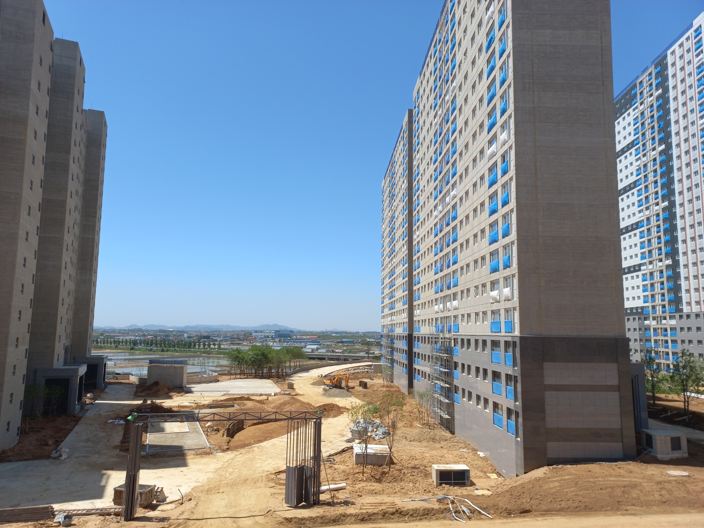 수도권과 지방에서 신축을 몇번 경험했지만 평택 엘크루만큼 뭔가 느긋하게 공사를 하는건 본적이 없는 것 같습니다. 공기를 처음부터 느긋하게 잡았는지, 건물은 작년에 이미 다올라갔고 도색도 3월부터 시작하여 차근차근 한동씩 칠해가고 있습니다. 4월부터는 식재까지 심고 있습니다.