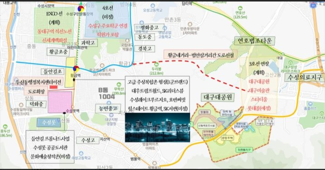- 21년 7월 추가 : 황금역 트램 확정, 한성스퀘어 위쪽 부지 밀고 포스코 주상복합 들어오는걸로 확정됨(교회 팔렸나봄), 상가부지가 얼마 안남음
