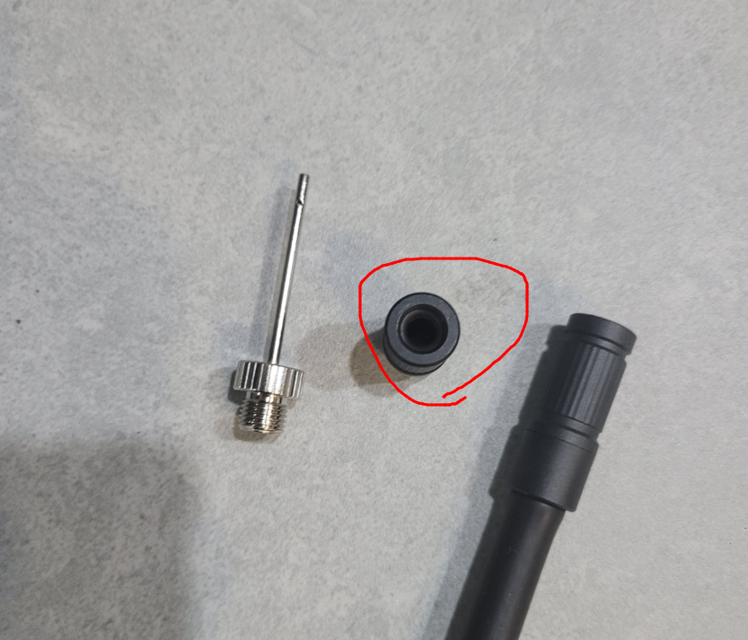 저 어댑터를 샤오미 공기주입기 호스의 꼬다리에 돌려 끼우면 된다.