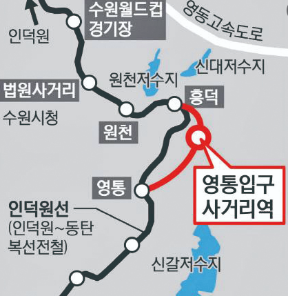 원인이 이것만 있는건 아닙니다. 역사 환기구 문제인데요. 역사 환기구의 영향을 받는 아파트 주민들과의 협상이 되지 않는 부분이 있습니다. 해당 정거장은 112 정거장입니다. 112정거장은 영통역 예정지이고 분당선과의 환승이 가능한것 같습니다.