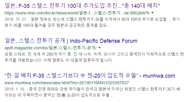 우리나라는 2021년까지 활주로 이착륙이 가능한 F-35A 스텔스 전투기를 총 40기 보유할 예정이다. 작전 반경이 1000km까지 나오므로 북한은 물론이고 일본과 중국도 쫄 수밖에 없다. 일본 반응을 보니 벌써부터 난리도 아니다. 동쪽 섬나라 놈들은 지들도 F-35 보유국이면서 왜 그러는지?