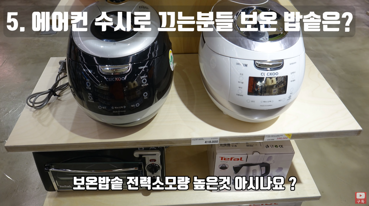 오히려 전기밥솥의 보온기능을 쓰는게 훨씬 더 전력소모가 크다고..