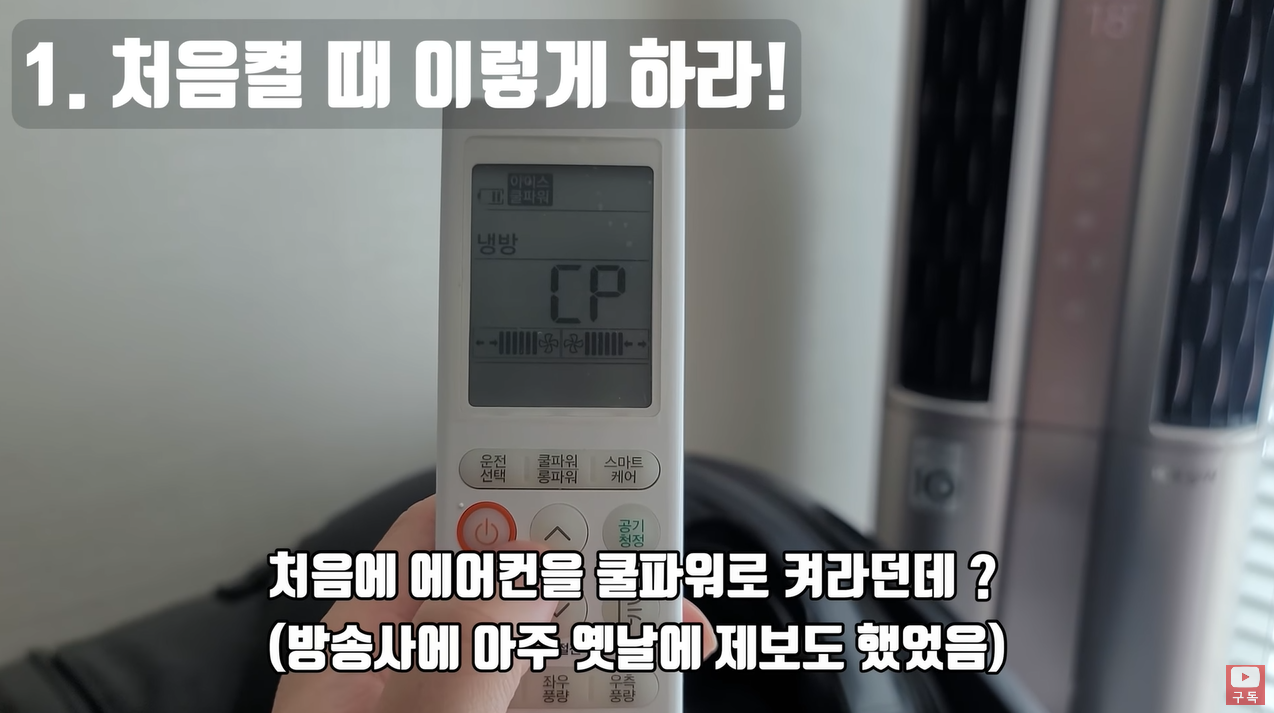 처음에 목표온도까지 빠르게 낮춰야 그때부터 실외기가 덜 돌아가면서 전력소모가 적다는 내용입니다. 쿨파워 기능이 없다면 '파워'버튼 눌러서 강력하게 냉방하고, 공기가 차가워지면 원하는 온도에 맞춰놓고 인버터 모드(자동)로 돌리거나 원래부터 인버터 기능이 있는 에어컨이라면 그냥 놔두면 됨.