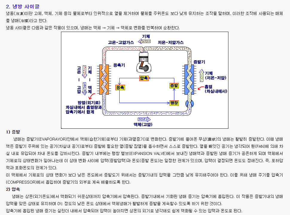 아, 냉각사이클이 아니라 '냉동사이클'이 맞는 말이었나..