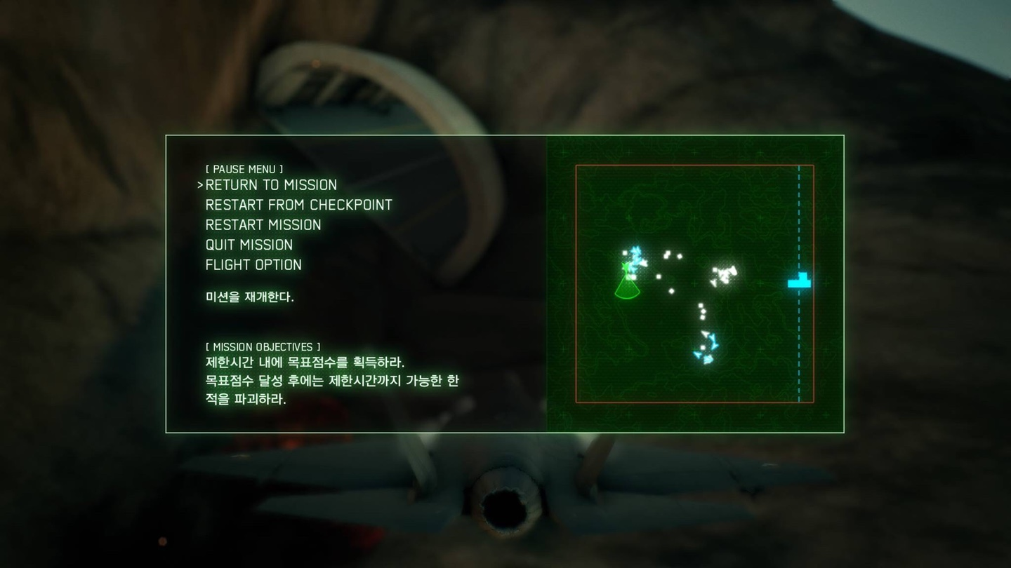 ★★ 컷신 이후 주인공 기체의 왼쪽에 네임드가 등장하는데, 바로 하이G턴으로 선회하여 빠르게 격추. 미사일을 3발 이상 맞아아 격추되므로 락온되자마자 두 발 발사 후 속도를 줄여 거리를 유지한다. 재장전이 되자마자 바로 다시 두발을 쏘고 격추되는거 확인하고 있지 말고 하이G턴으로 뒤로 돌아 IRBM으로 최대 가속 최대 속력으로 직진하자. 네임드 잡는 다고 시간을 지체하면 IRBM은 절대 못 잡는다.