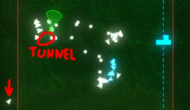 터널 찾기가 좀 어렵다. 가장 먼저 조우하는 기지들의 항공기(F-16+수송기3대와 지상목표) 터뜨리고 바로 북서쪽 기지로 날아가 SAM을 찾으면 터널이 나온다. 입구와 출구 개념이 없으니 편한 곳으로 들어가자. 아래 동영상의 썸네일과 내 캡처본 아무 데로나 들어가면 되는데, 당연히 넓은 통로로 들어가는 것이 좋다. 공격하러 오므로 마중나갈 필요 없음.